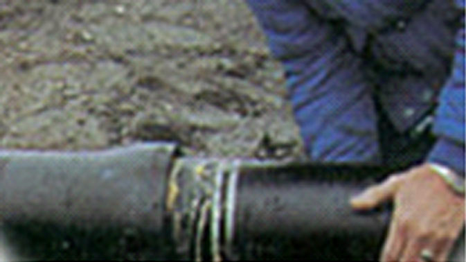 Small pipe can be assembled with the use of a long bar, while larger pipe will require additional power, such as a jack or come-along. A backhoe may be used to assemble pipes of intermediate and large sizes. The plain end of the pipe should be carefully guided by hand into the bell of the previously assembled pipe. The bucket of the backhoe may then be used to push the pipe until fully seated. A timber header should be used between the pipe and backhoe bucket to avoid damage to the pipe.