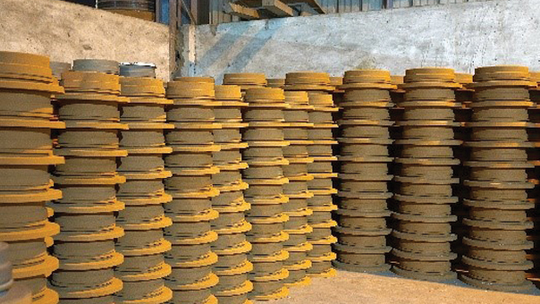 Head core made up of resin coated sand serves to seal the socket end of the mould and form the inside of the socket end of the pipe. As the mould rotates evenly, centrifugal force distributes the metal evenly, forming the pipe wall. Centrifugal casting machine containing the mould is mounted on a set of wheels, which move on a track.