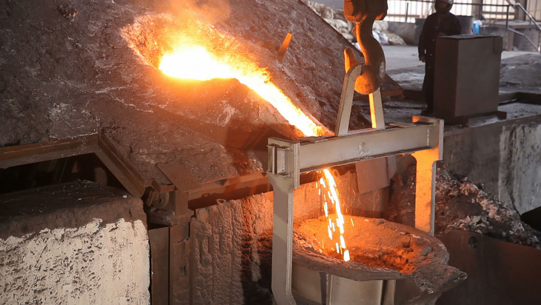 The hot metal tapped from induction furnace is transferred into the turning ladle. Pure magnesium is then charged into the reaction chamber through a charging mouth. The hydraulic system provided will tilt the turning table into vertical position, thus allowing molten iron to react with Magnesium. The reaction is allowed for 10 minutes. Once the reaction is complete, the hot metal is transferred to the pouring machine for casting the Ductile Iron Pipes.